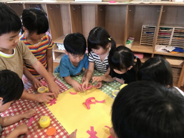 2025.09.12 保育園の日常、南流山認定こども園 おじいちゃん、おばあちゃん、いつまでも元気でね! 敬老の日に向けて、地域に暮らすおじいちゃん、おばあちゃんに向けてお手紙を作りました。 紙テープをばってん、ばってんと重ねて 何のお花かな? コスモスの素敵なお手紙が完成しました。 おじいちゃん、おばあちゃん、いつも見守っていてくれてありがとうございます!