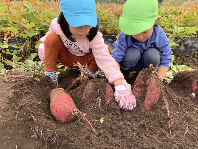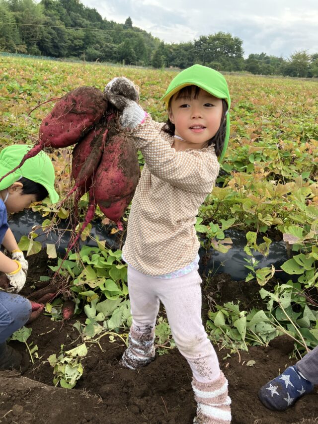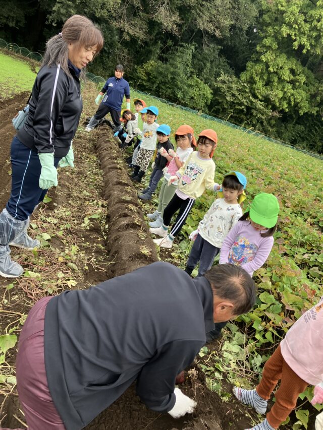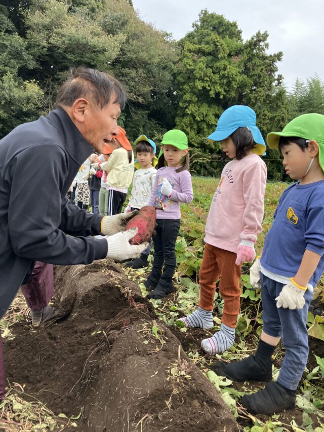 幼児クラスで原体験バスに乗ってサツマイモ掘りに行ってきました。