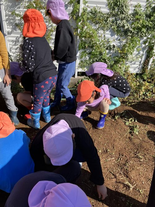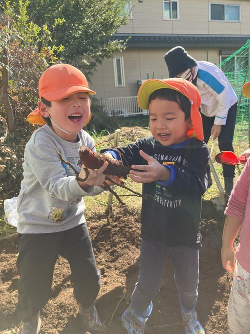 2025.12.3 保育園の日常、大岡山園 初めてのバスに乗って畑へ・・・ 年中クラスが畑デビューをしました。 年長クラスのお友だちに教えてもらいながら雑草を取りました。 なんと・・・ 畑から前回取り切れなかったさつまいもが出てきました。 来年、自分たちで作るのが楽しみだね。