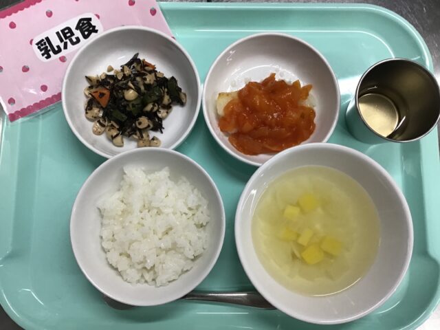 かれいのトマトソースは食べやすい味付けでした。苦手な子が多い大豆いりのサラダでしたが野菜など具沢山だったので完食する子が多かったです。