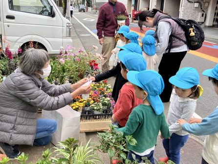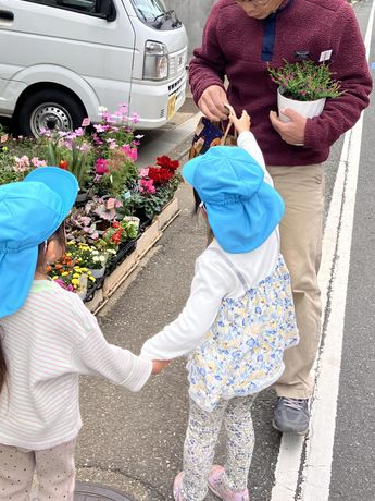 年少クラスはお花屋さんへ。