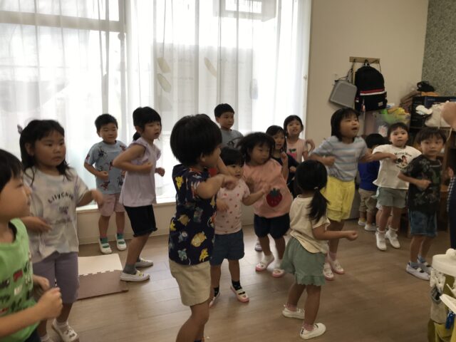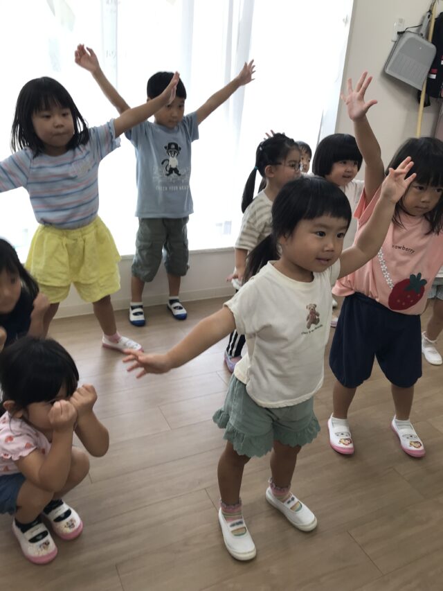 2025.09.15 保育園の日常、誉田保育園 運動会ダンス練習☆4歳児 クラスに分かれて、運動会の体操やダンス練習に取り組み始めました 「たいそうやりた~い」自分達で取り組む姿。意欲的です!! お互い見せあいをしたり、他のクラスの体操にも興味があるようです 結局はみんなで一緒に踊りだし、ダンスや体操など、リズムに合わせて、体を動かす事が楽しいようです。一生懸命覚えようとする「やる気!」が見られます。運動会楽しみですね。