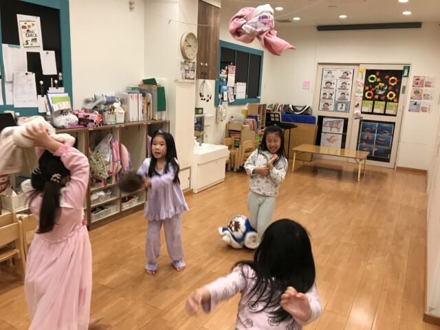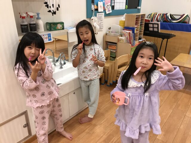 2025.12.3 保育園の日常、東葛西園 11月の思い出~お泊り保育Ⅲ~ お楽しみは続くよ~ 枕はないから、掛け布団を丸めて豪快に投げ合う枕投げ風・・・・ そして。。。 サプライズで夜のおやつタイム~ しっかり歯磨きしないとね~ 歯を磨いたら・・・・・おやすみなさいzzz