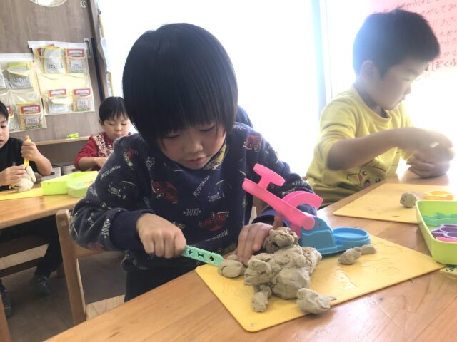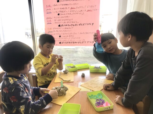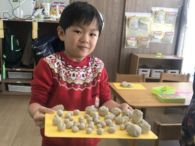 2025.11.29 保育園の日常、誉田保育園 4歳児の日常♪ 園庭では、はじめてのサッカー♪ ゴール!ではなく、取り合い形式でたくさん走ります♪「まてー」 転んでしまったお友だちに「大丈夫・・・?」と、かけよる優しいお友だち♡ 保育園の畑の土は砂場とは違うね♡土の違いが畑の人気のヒミツ♡ 室内では粘土遊びが人気♪ 「これを使って、つぶしてみるよー」「粘土はきれるかな・・・」 みて~!丸めてみたよー!いっぱい作ったよ♡ 切ったり、さしたりして目指すは理想の剣♪4歳児のお友だちは園庭、室内でもたくさん自分たちのやりたいことを見つけ、たくさん遊んでいます♪これからも自分たちがやりたいことを見つけてみんなで遊ぶ楽しさをサポートしていきたいですね♪
