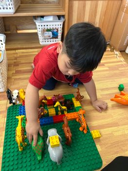 2026.04.8 保育園の日常、菊名園 あそびはまなび! 2歳児うさぎ組さんは自分の世界でとことん遊んでいます~😊 動物園を作っています~ どんどん、たくさんの動物が遊びに来てくれました~! みんな仲良し😊 次は、お絵描き!この色がお気に入り! 最後は棒落とし!指先の鍛錬です~! あそびはまなび!想像力、やる気、根気も育まれています✨