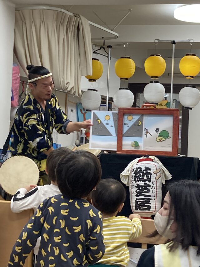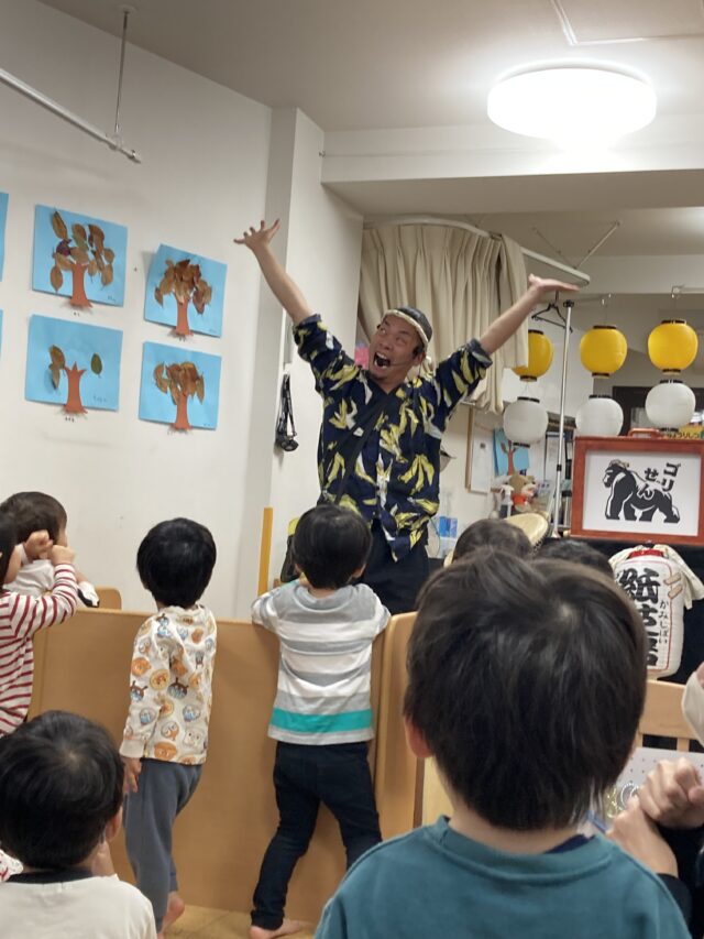 ゴリラ先生自作の楽しい楽しい 仕掛けいっぱいの紙芝居を見ました。