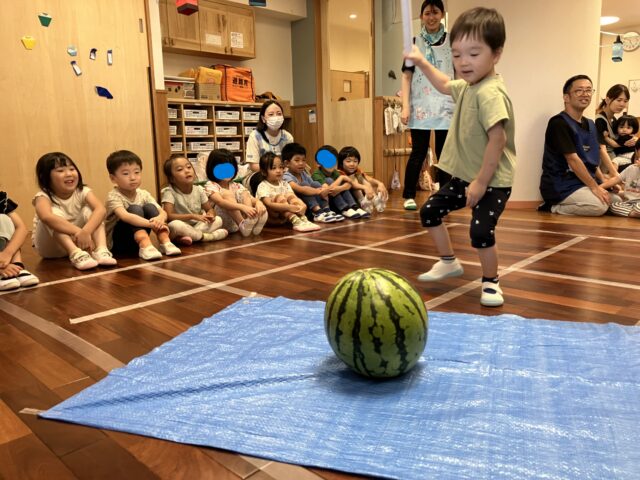 今日の下丸子園は、スイカを相手に掛け声と声援の嵐でした🍉