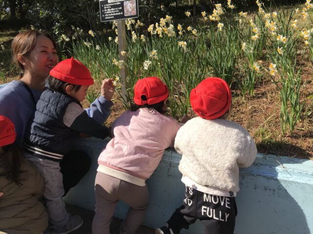 バギーから降り、保育者と一緒に手を繋いで散策を楽しみました✨