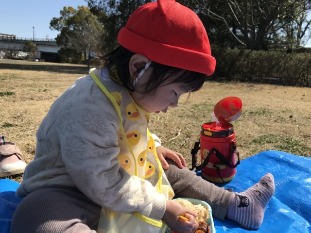 その後は芝生広場へ向かい、少し遊んだ後は楽しみにしていたお弁当タイム🍱