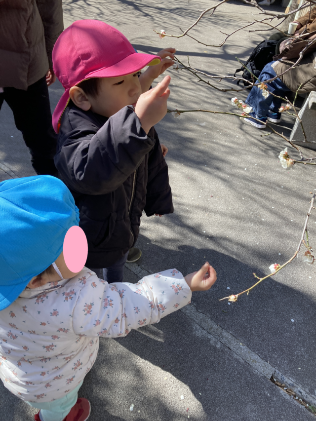 公園ではお花をまじまじと見る子どもたち。芝生があると寝転がり気持ちよさげでした。