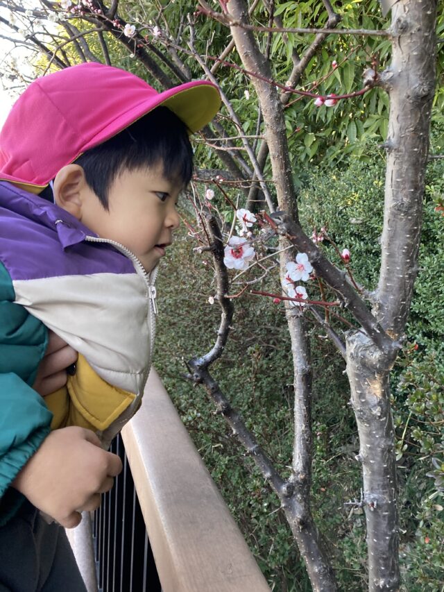 公園ではお花をまじまじと見る子どもたち。芝生があると寝転がり気持ちよさげでした。