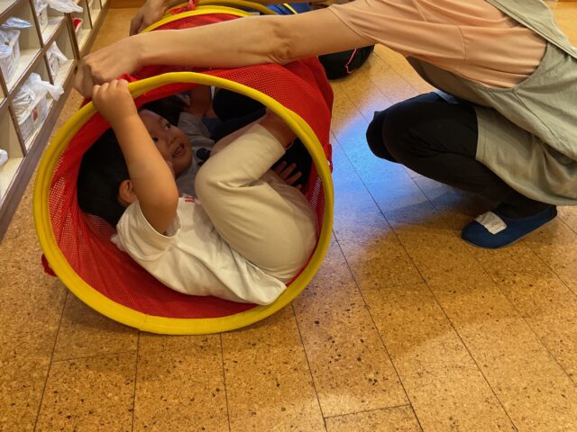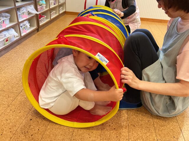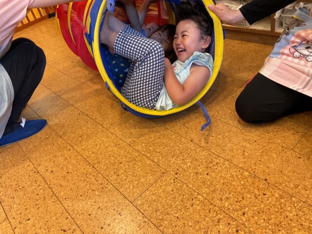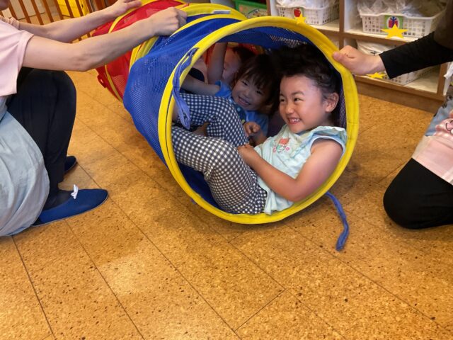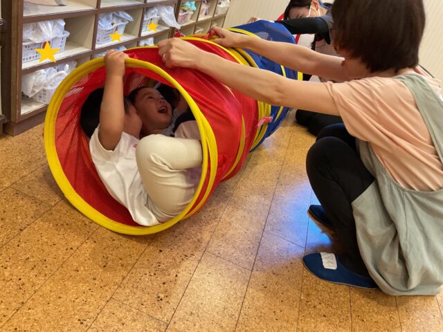 かに組キッズは連結したトンネルの中に仲良く入ってごろんごろんごろん