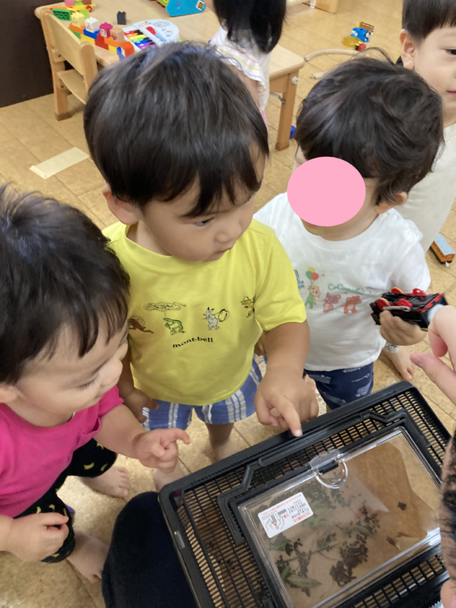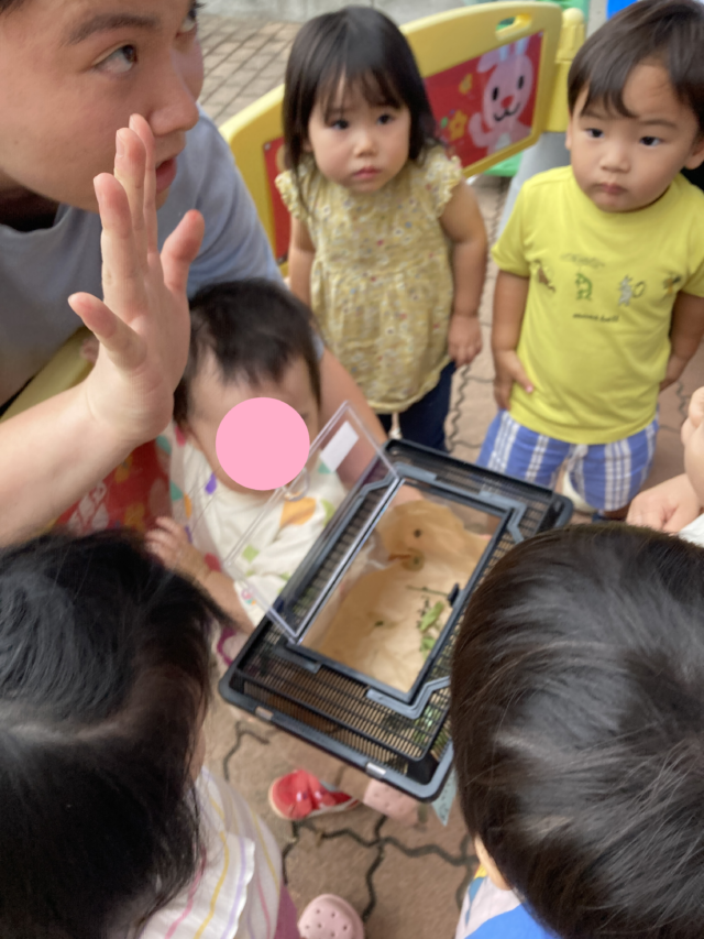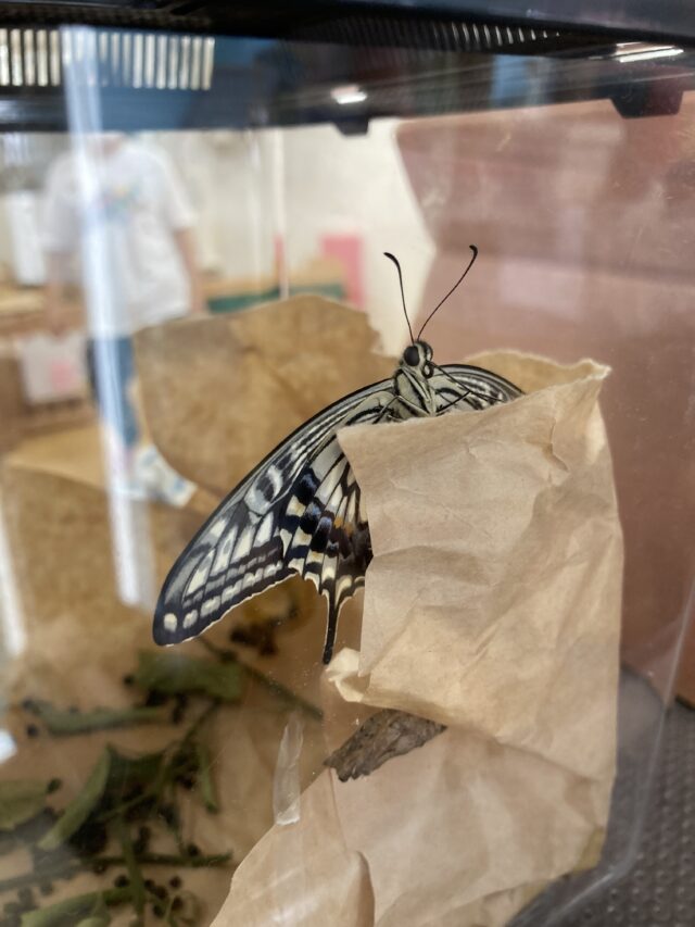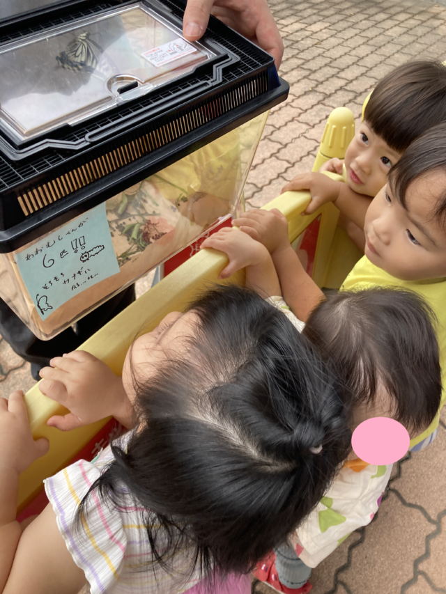 2025.09.5 保育園の日常、西馬込小規模保育園 さよなら~ 昨日 さなぎから アゲハ蝶になりました。 元気に大空に飛び立ちました。 いよいよ サヨナラの時です。 虫かごの蓋オープン サヨナラ~ 元気でね~