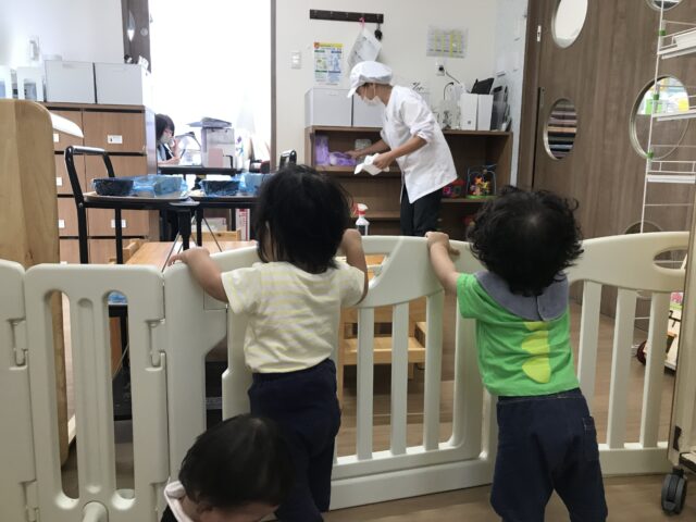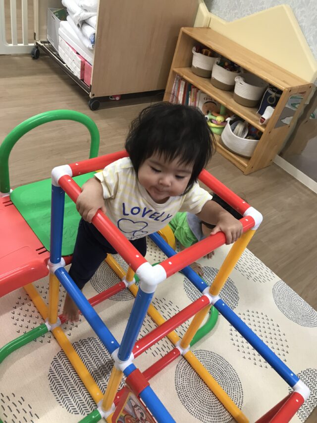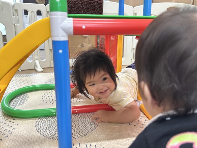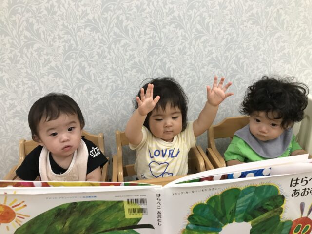2025.08.31 保育園の日常、誉田保育園 ちゅーりっぷ組の1日☆0歳児 朝の会ではみんなの好きな絵本をみました。笑ったり、手で「あおむし」を触ってみたりして、楽しんでいます 朝の会の後はジャングルジム遊び。上手にバランスを取りながら、登れるようになりました 「いないいないば~」お友達と遊ぶのも楽しいね~ 鏡にうつる僕とおしゃべり!「あ~うあ~う」どんなお話ししているのかな? 給食を運んできてくれると「早く食べた~い」と子ども達。後ろ姿がとっても可愛いです。いっぱい遊んで、いっぱい食べて、大きくな~れ!!