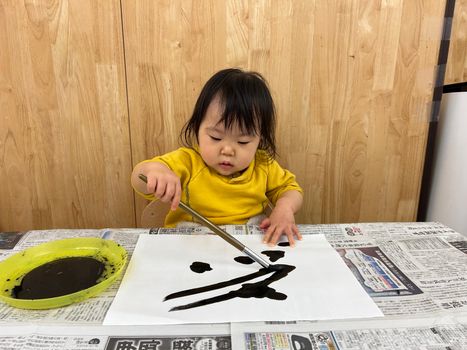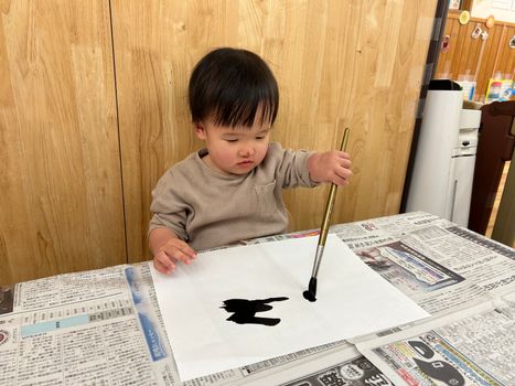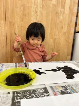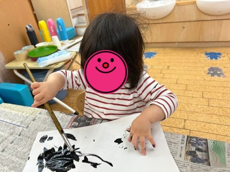 2026.01.7 保育園の日常、菊名園 はじめての書初めに挑戦! あそびはまなび✨ ひよこ組さんは、はじめての書初めに挑戦です😊 ちょん! ぐぐっ!今度は少し力を入れて! ちょん!ちょん!ちょん!ちょん! 書きまくっております✨ 力強いタッチでぽんぽんぽん!個性が光ります✨ 腕を大きく回して、なかなかの筆さばきです~👏 みんなの作品は、ギャラリーで輝いてます😊✨