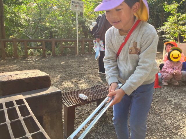 年長さんは“火の中にお芋を入れる”という初めての体験も試みました!