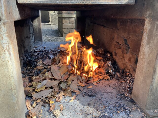 大きなかまどに火が灯ると「わぁ~✨👀」と声をあげながら