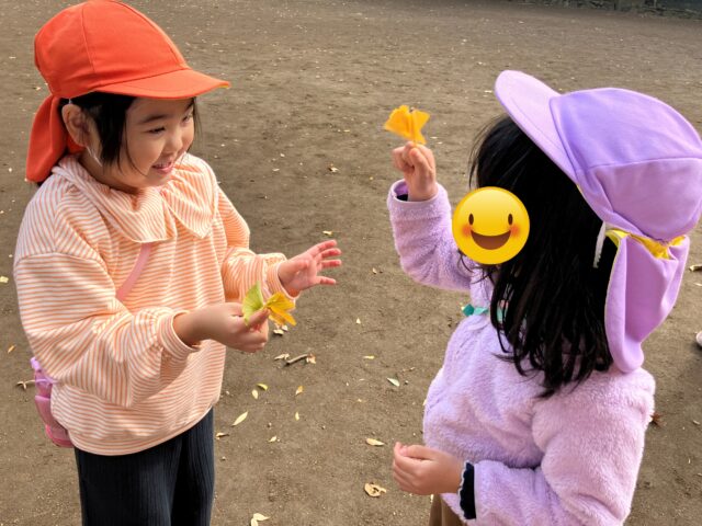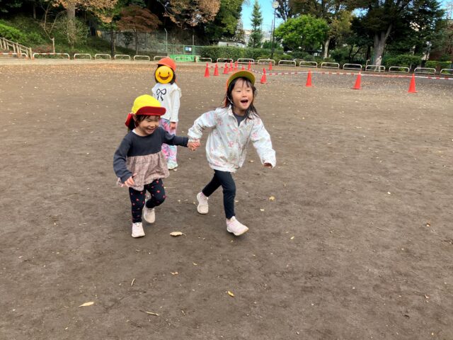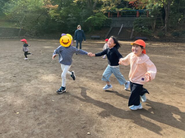 お芋が出来上がるまでは広いグラウンドでイチョウを拾ったり手つなぎ鬼ごっこを楽しみました!