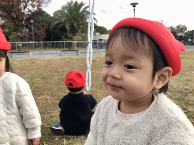 公園ではシャボン玉やボール遊びをしたり、広場を探索したりとのびのびと活動を楽しみました!