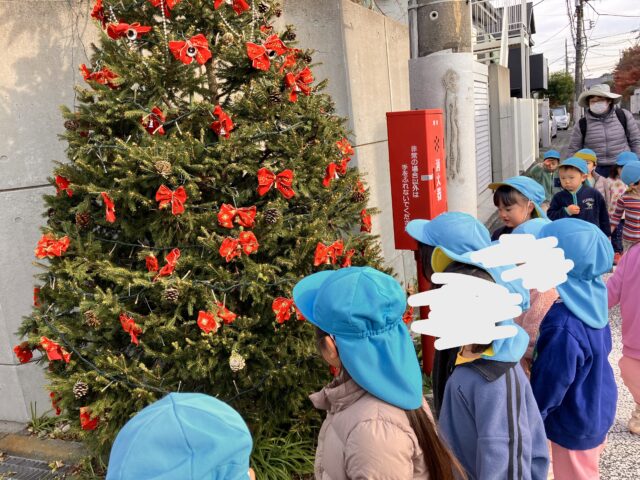 近所のクリスマスツリーに、みんなでうっとり…