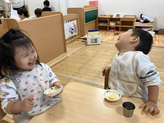 少し遅めに給食を食べた二人が