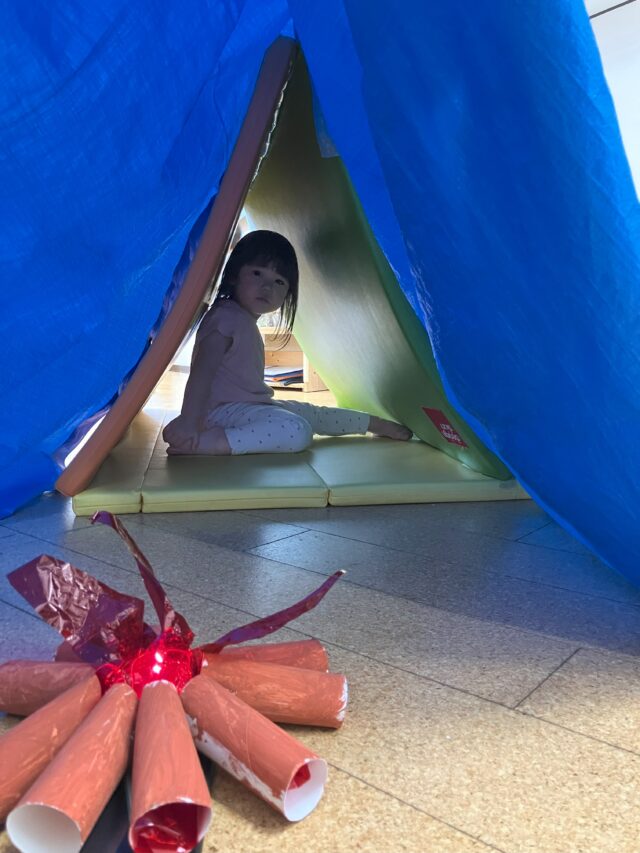今日は合同保育で「キャンプごっこ」を楽しみました。