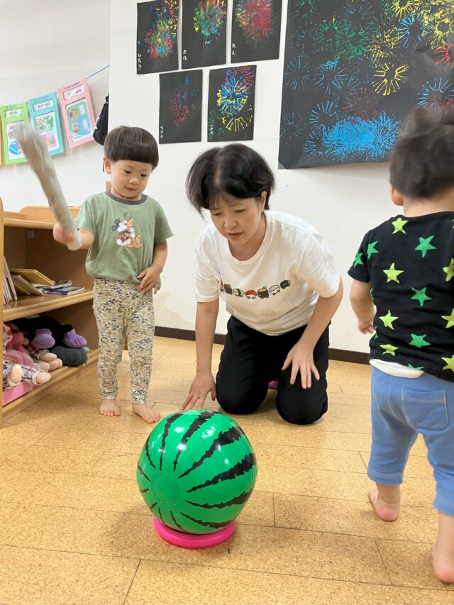 「スイカわりみたいだね!」
