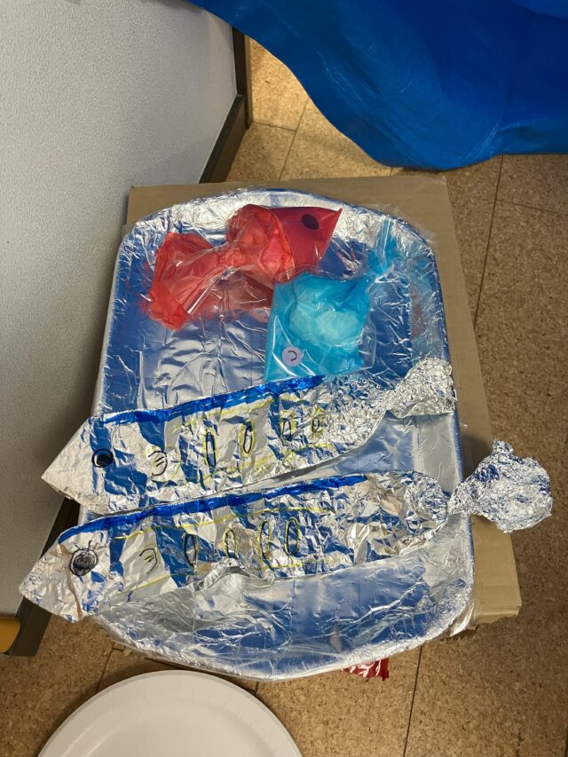 と、友だちや先生に見せ合う子どもたち。