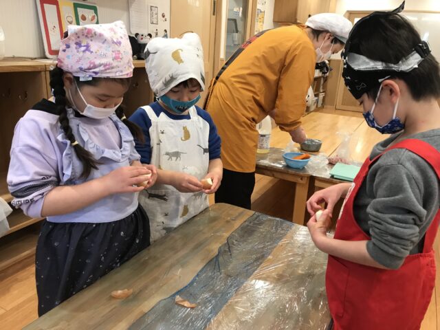 集中して取り組み「おいしくな〜れ♡」と心を込めて混ぜました!