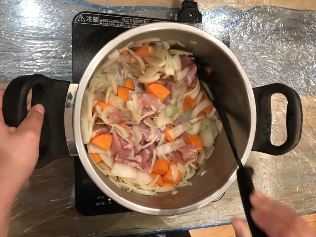 手順を確認し、お米炊きや野菜の下準備!