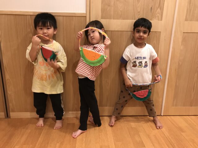 8月上旬にスイカ割りを楽しみ「スイカ美味しかったね〜」と話していたので、製作してみることに♫