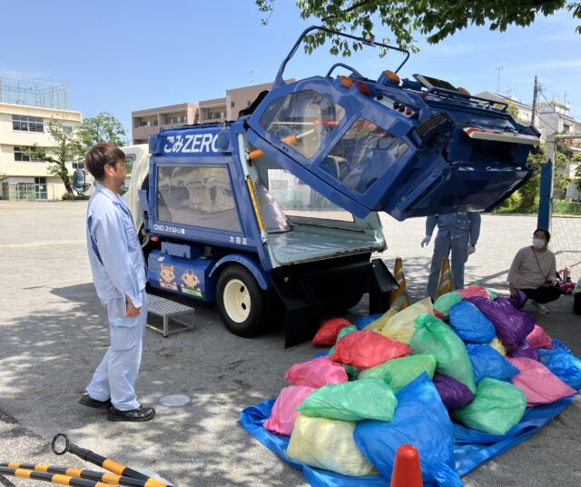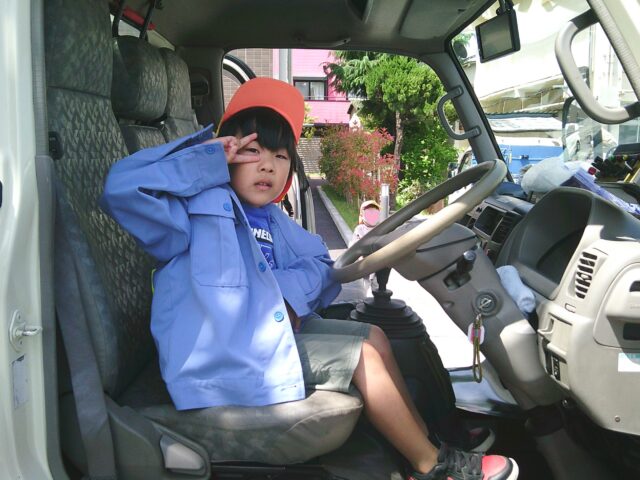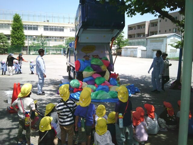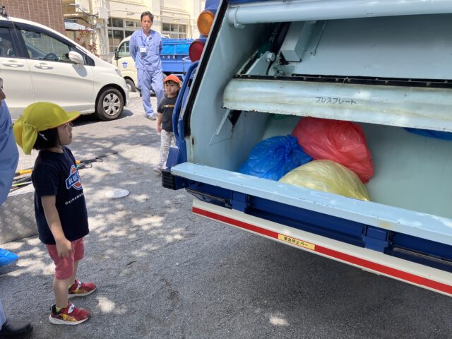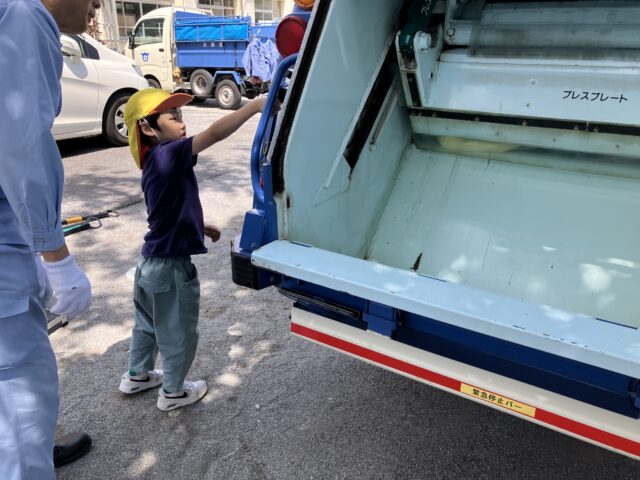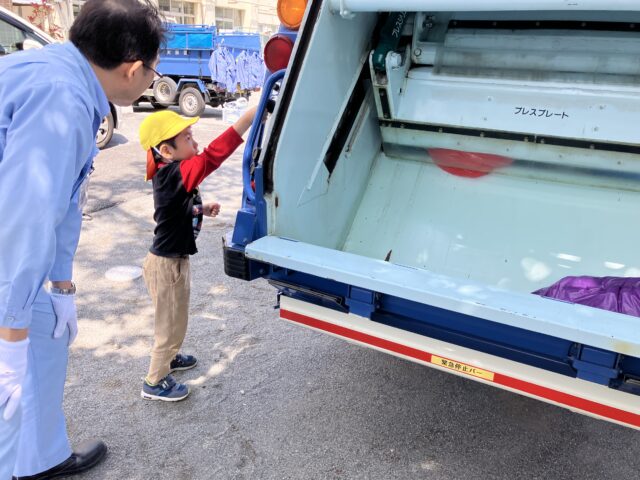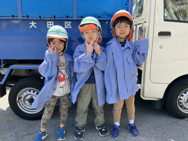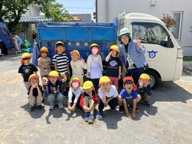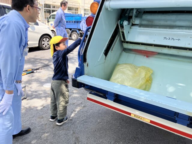 先日、キッズラボ蓮沼園にお声がけいただき【スケルトンごみ収集車】体験に、5歳児クラスそら組が参加してきました。