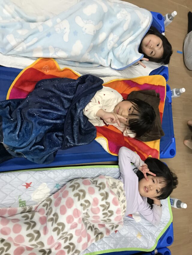 誉田保育園にとっての初めてのお泊り保育!5歳児さんが卒園してしまう前にみんなで一夜を一緒に過ごす特別感!昼間とはまた違った保育園の様子に楽しんで参加していました♪