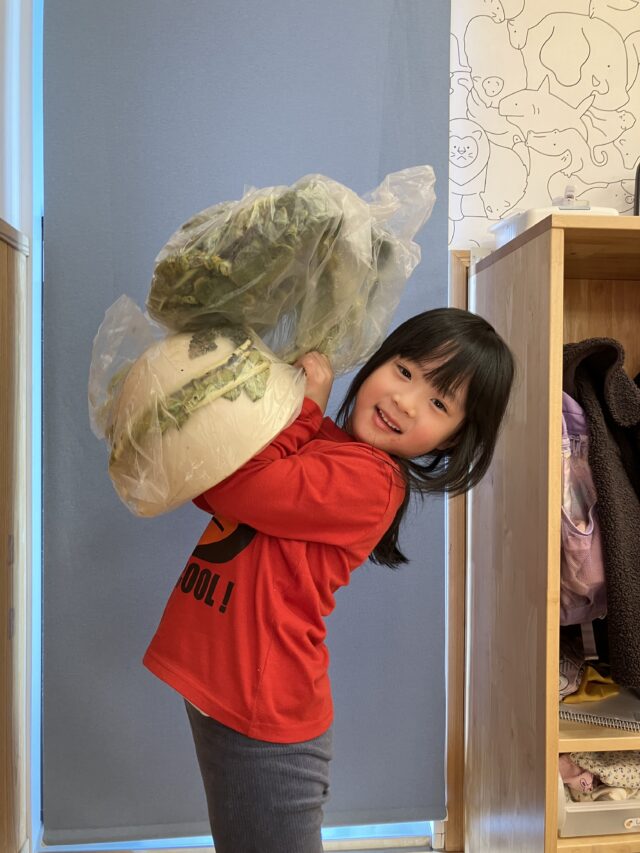2月の取り寄せ食材として、JAさんにお願いし、今回は約7kgのものを届けていただきました。本当は「10kg以上で!」とお願いしたいところでしたが、調理の先生から「まな板に乗るかしら…」と心配の声があり、今回はこの大きさに。