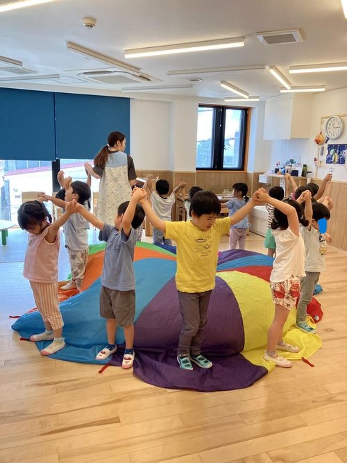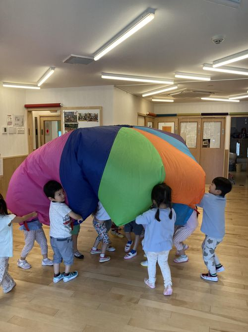 年中クラスのパラバルーンの様子。