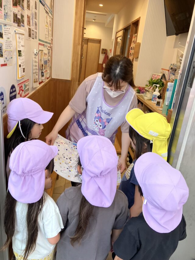 2025.06.27 保育園の日常、大岡山園 ポスターを届けに行ったよ♪ たいよう組が作った夏祭りのポスターを北千束園へ持って行きました。 「凄いね~!」と言ってもらう事ができ、誇らしげな表情の子どもたちでした(^^) 楽しい夏祭りになりますように☆