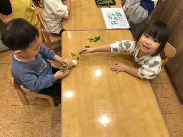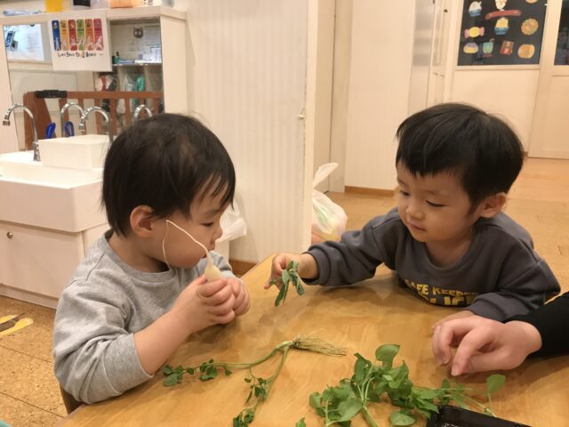 匂いを嗅いだり、葉っぱの部分を触ってみたり♪