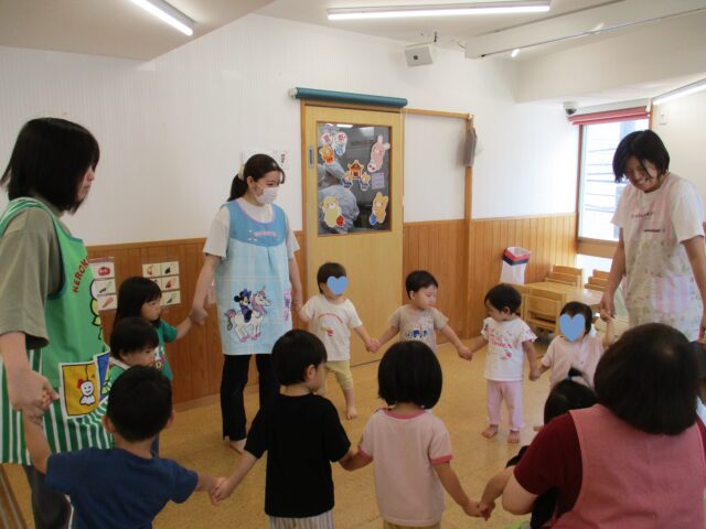 今日は、1・2歳児合同の一部のお友だちと地域の方をお呼びした交流保育を行いました。