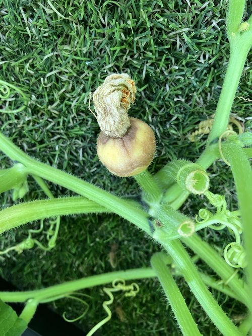 2025.07.1 保育園の日常、大岡山園 人工授粉は・・・ 1回目の人工授粉を行ったかぼちゃ・・・ 残念ながら失敗してしまいました。 しかしそのあとに3つの雌しべが咲きました。 成功しますように・・・