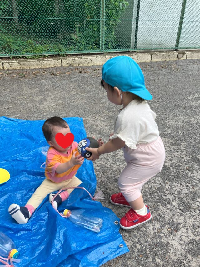 2025.06.4 保育園の日常、西馬込小規模保育園 今日はいい天気でしたね 公園遊び 1歳児クラス ボール・水たまり 楽しいね はい どーぞ! なんてかわいい やり取りでしょう。 2歳児クラス 公園と児童館に行き遊びました。 木に登りたい! がんばれ がんばれ! みんな大好き 児童館