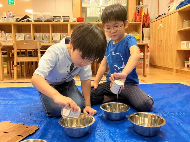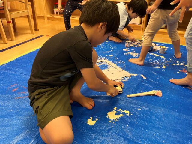 使用するペンキを容器に移す作業も、子どもたちが手伝ってくれました。