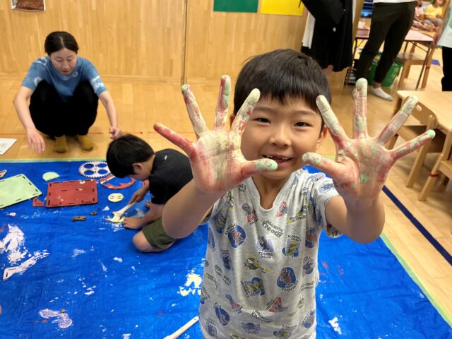 各々、筆を使ったり指を使ったりしながら塗っていきました♪