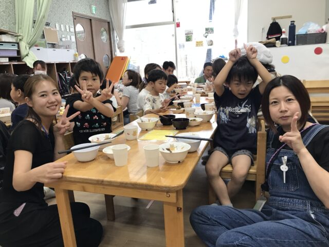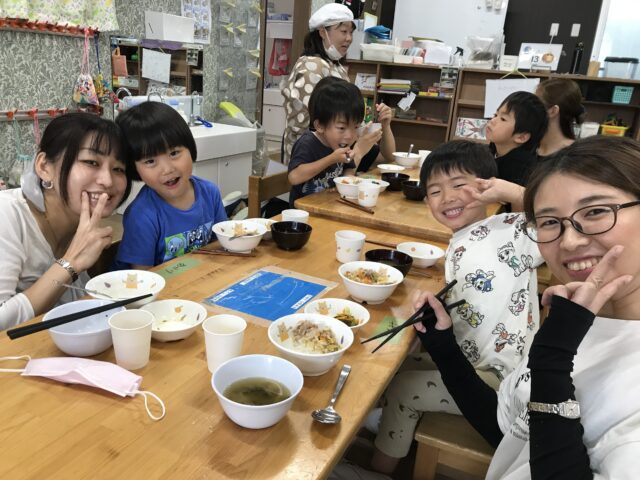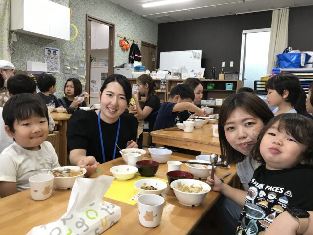 2025.06.14 保育園の日常、誉田保育園 保育参加☆3,4歳児親子給食 保育園の給食を親子で美味しく頂きました。 「おいしい~」「家より柔らかいです」など「味付けや固さ、調理方法など参考になりました」とアンケートに書いてくださいました。親子で食べると、いつもより美味しい給食の時間でした