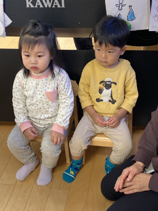 2025.12.16 保育園の日常、西馬込小規模保育園 健康診断で駅前園に行ったら 2名の子どもたちが駅前園に健診に行ったら なんと駅前園が発表会の日でした。 小規模園とは違い大人数に初めは驚いた様子でしたが 一緒に見て楽しんできました。