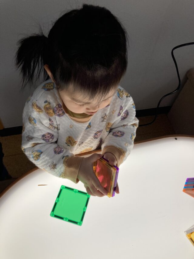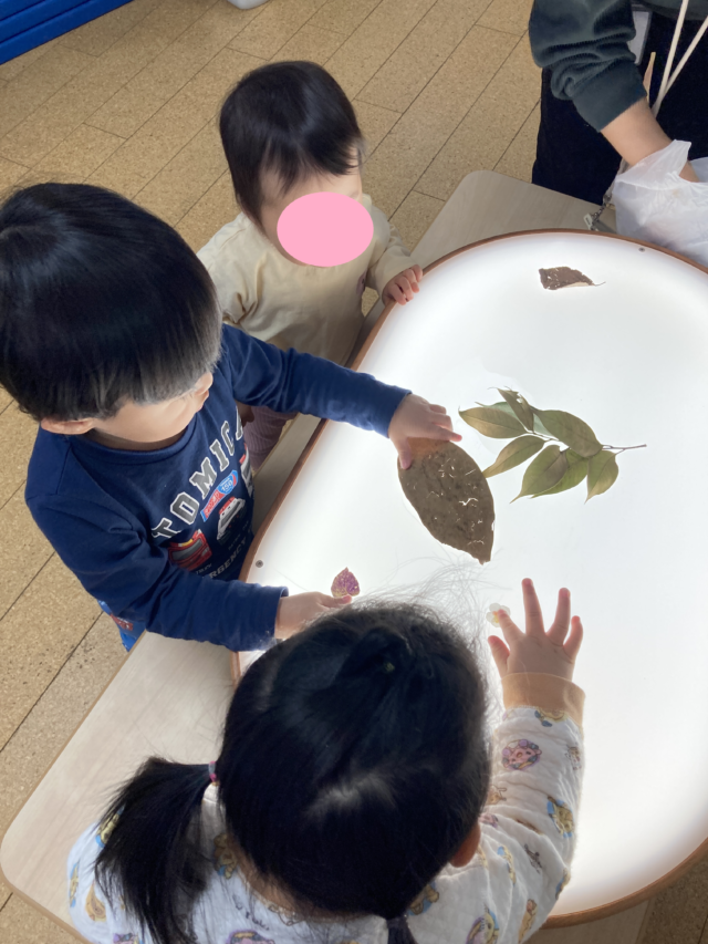 光テーブルを出して 光遊びを行いました。