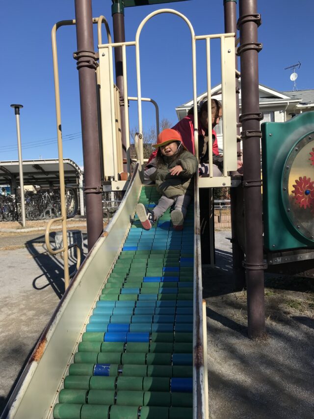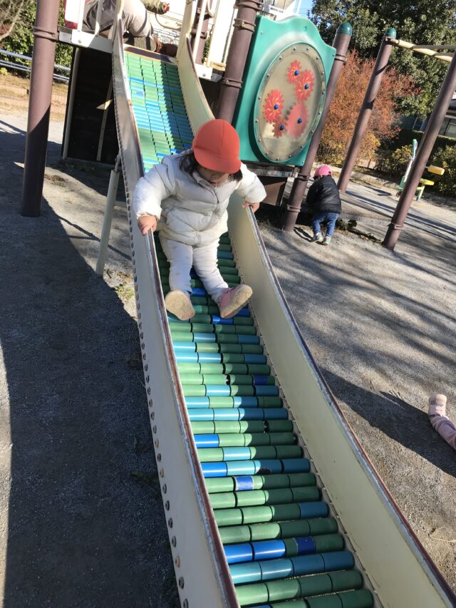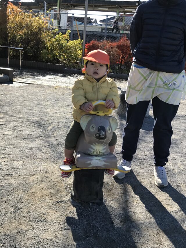 2025.12.20 保育園の日常、誉田保育園 公園で遊んだよ♪1歳児♪ みんなの大好きな公園に着くと、さっそく走り出して遊んでます♪ すべり台は人気です♡ パンダとコアラの乗り物も大人気♡順番で乗れました~♪ これはなんだろうね・・・公園にあるものはみんな大好き♡ 電車が到着すると・・・みんな興味津々♡電車きたーと嬉しそう♪また行こうね!