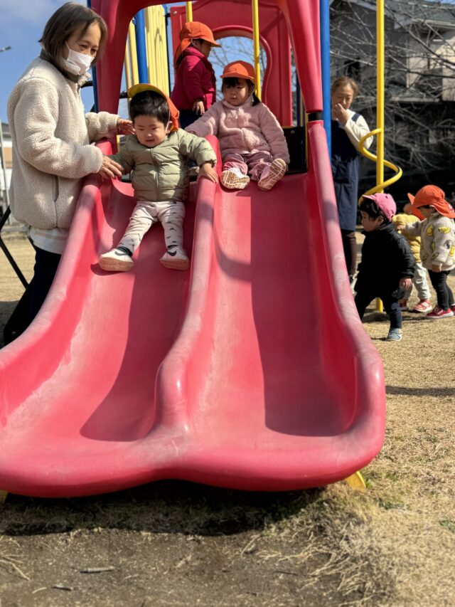 すべりだい!みんな大好きな遊具♡また公園に行っていっぱい遊ぼうね♪