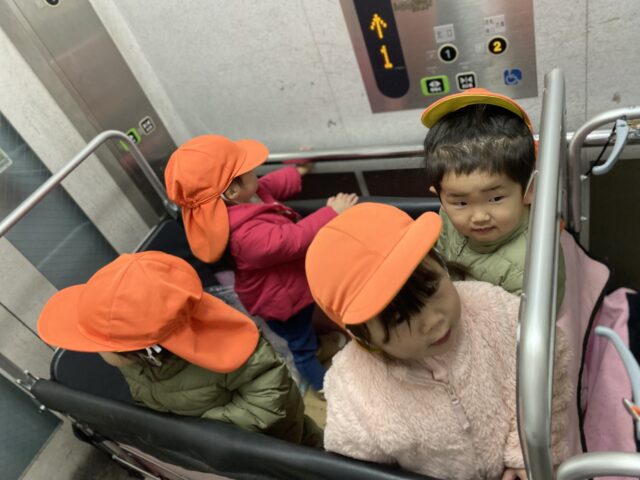 駅前の公園に行くのにエレベーターで出発♡