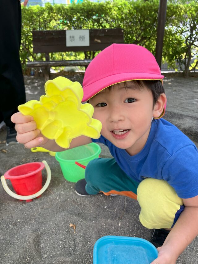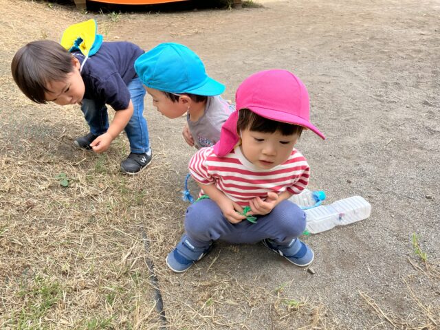 2025.09.30 保育園の日常、西馬込小規模保育園 共育ちの日 今日は縦割り保育を行いました。 各グループ 公園に行き遊びました。 広場遊びのグループ ありさん いるかな~ 砂場遊びのグループ お砂場は大人気です。