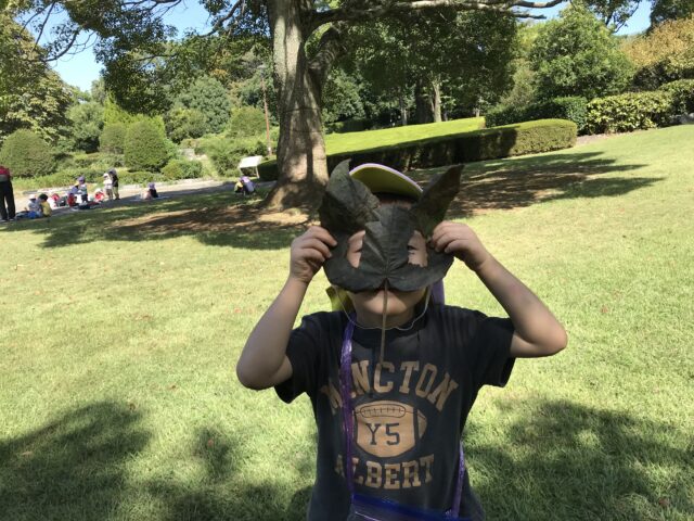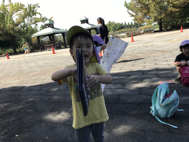 お弁当を食べた後は公園内をゆったりと散策しました。大きい葉っぱやどんぐり、栗などを拾って大満喫!